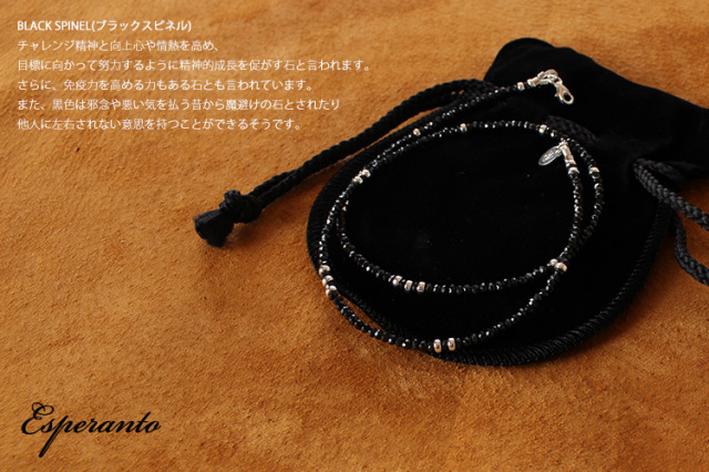 Esperanto メンズ レディース ブラックスピネル ネックレス シルバービーズ 45cm エスペラント